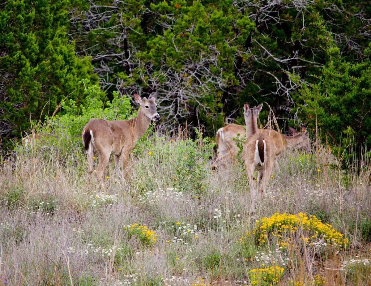 Escape to this serene 2-acre guest cottage at the base of a gated Hill Country estate. With 2 king bedrooms, a full kitchen, and peaceful views, it’s perfect for couples, families, or remote work. Close to Lake Travis, local wineries, and hiking trails. Enjoy privacy, comfort, and nature — all just 35 minutes from Austin.